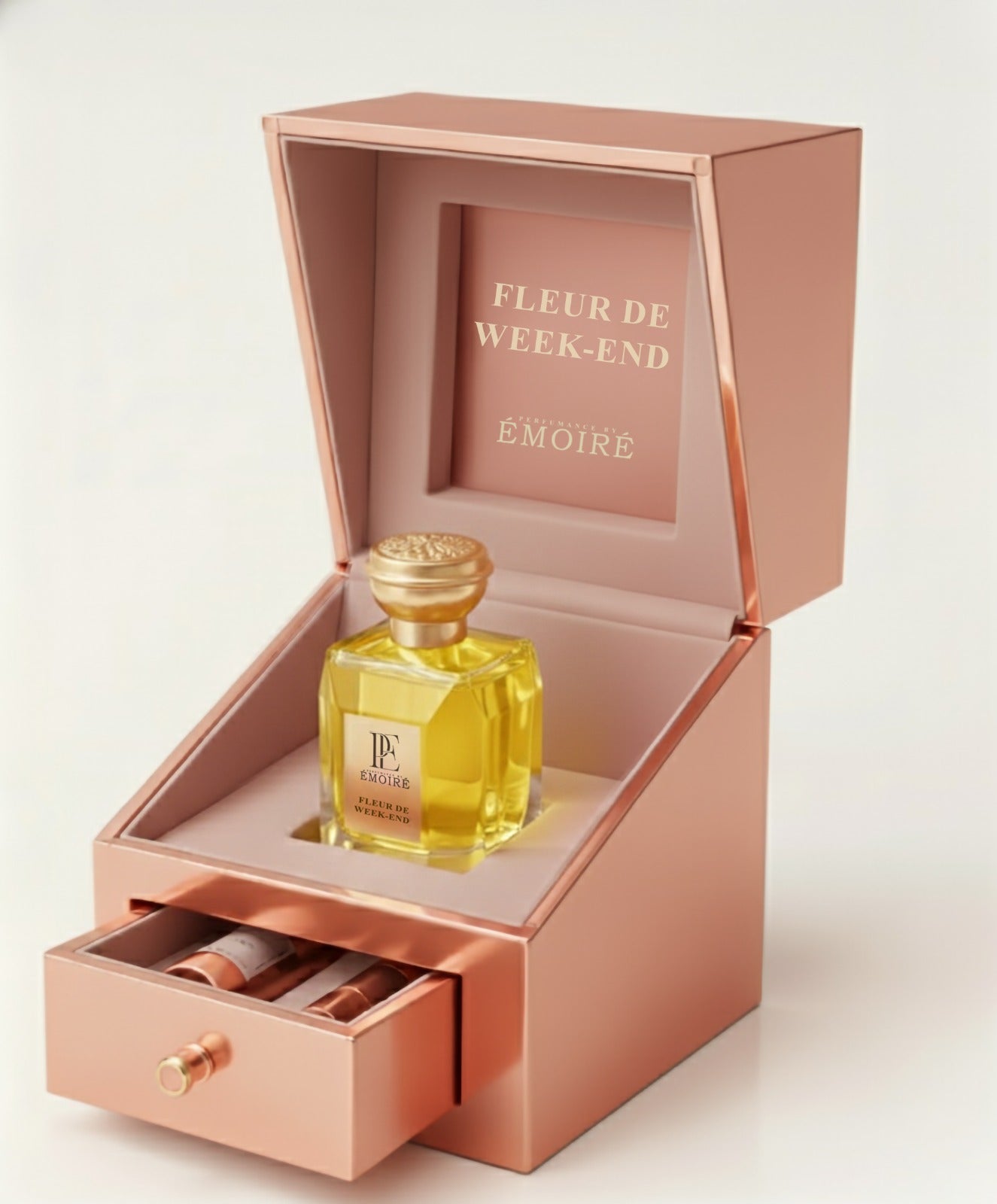 Fleur de Week-end is bright, floral, feminine — a soft touch of happiness bottled with luxury precision.